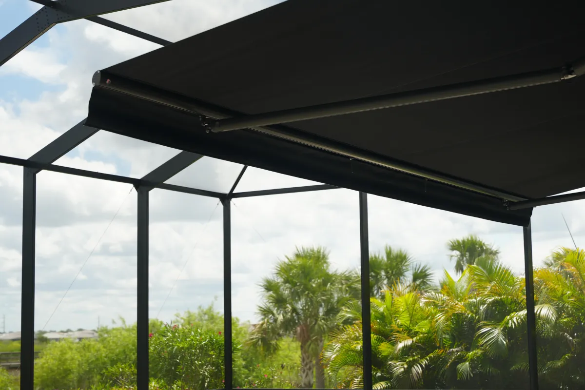 Motorized screens that protect your outdoor space from hurricanes, bugs, blazing sun,