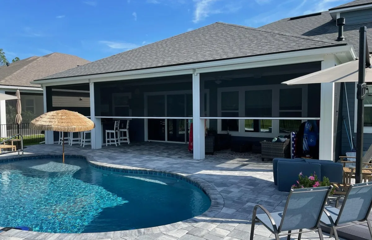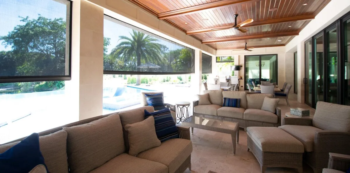Motorized screens that protect your outdoor space from hurricanes, bugs, blazing sun,