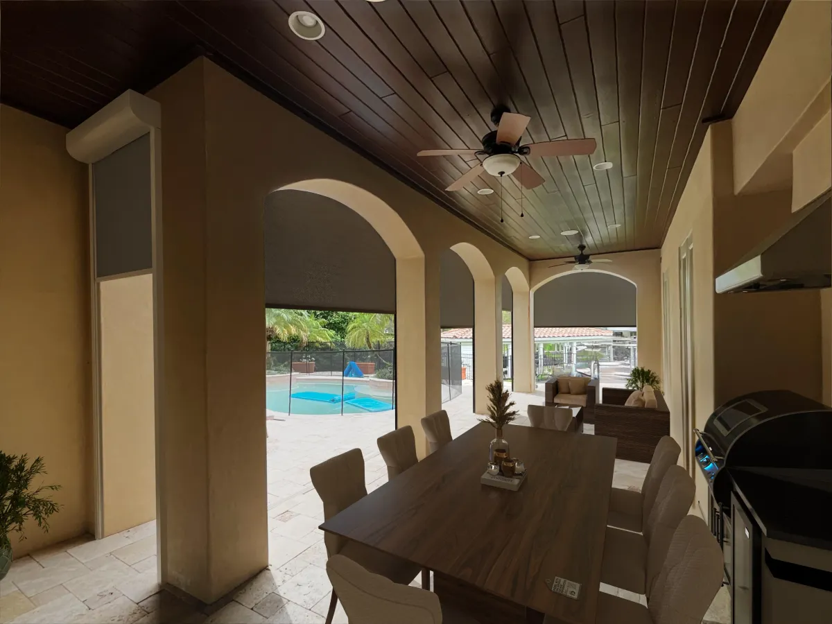 Florida Living Outdoor's motorized patio screens deliver one-button control over sun exposure, insect intrusion, privacy, and weather protection—transforming unused outdoor square footage into comfortable, functional living space that homeowners can enjoy 365 days a year.
